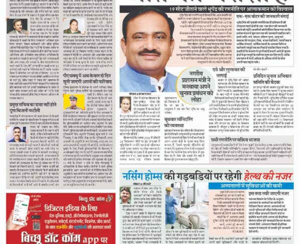 नगरीय प्रशासन मंत्री ने मनवाया अपने चुनाव प्रबंधन को लोहाभोपाल/प्रणव बजाज/बिच्छू डॉट कॉम। प्रदेश में खंडवा लोकसभा के साथ पृथ्वीपुर, जोबट और रैगांव विधानसभा सीट पर हो रहे उपचुनाव…