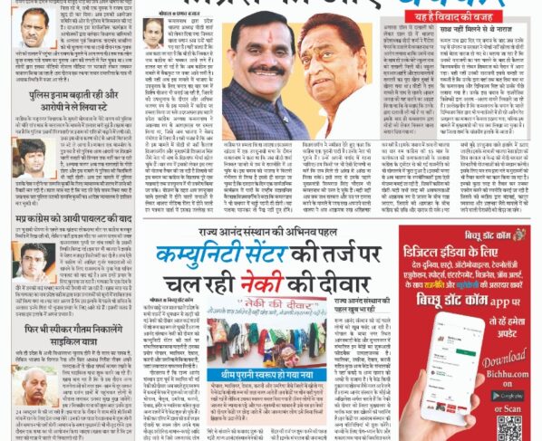 राज्य आनंद संस्थान की अभिनव पहलभोपाल/बिच्छू डॉट कॉम/बिच्छू डॉट कॉम। करीब साढ़े चार साल पहले प्रदेश के सभी शहरों में धूमधाम से खड़ी की गई नेकी की दीवार आज कई…