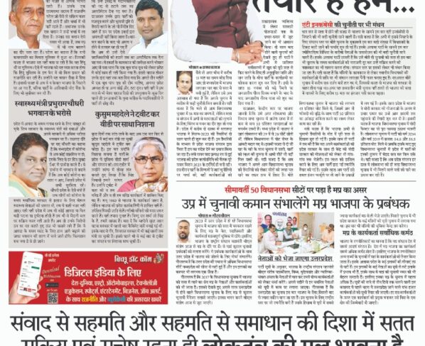 संगठन में नियुक्तियों का दौर शुरूभोपाल/हरीश फतेह चंदानी/बिच्छू डॉट कॉम। मध्यप्रदेश भाजपा के प्रभारी पी मुरलीधर राव के राग का असर ही है कि लंबे समय से संगठन के विभिन्न…