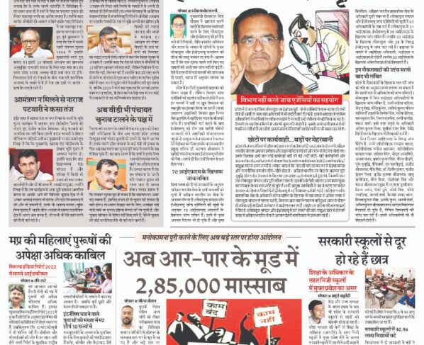 दो दर्जन महत्वपूर्ण प्राधिकरण और अन्य संस्थान रिक्त भोपाल/प्रणव बजाज/बिच्छू डॉट कॉम। मप्र में शिव सरकार द्वारा भले ही एक साथ निगम-मंडलों में 25 नियुक्तियां कर दी गई हैं ,…
