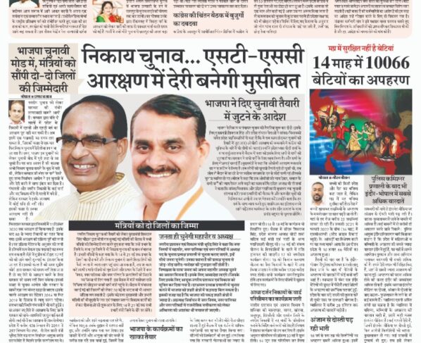 विधायक बनने के बाद पहली बार देनी होगी अग्नि परीक्षाभोपाल/हरीश फतेहचंदानी/बिच्छू डॉट कॉम। प्रदेश में होने वाले निकाय व पंचायत चुनाव भाजपा विधायकों के लिए अग्नि परीक्षा के समान रहने वाले…
