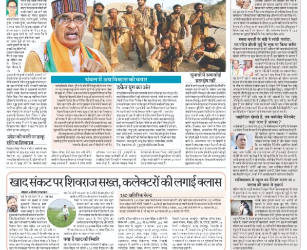 भोपाल/विनोद उपाध्याय /बिच्छू डॉट कॉम। सूबे के कई जिलों से आ रही खाद संकट की खबरों से नाराज मुख्यमंत्री शिवराज सिंह चौहान ने कलेक्टरों की क्लास लगाई है। इस दौरान…
