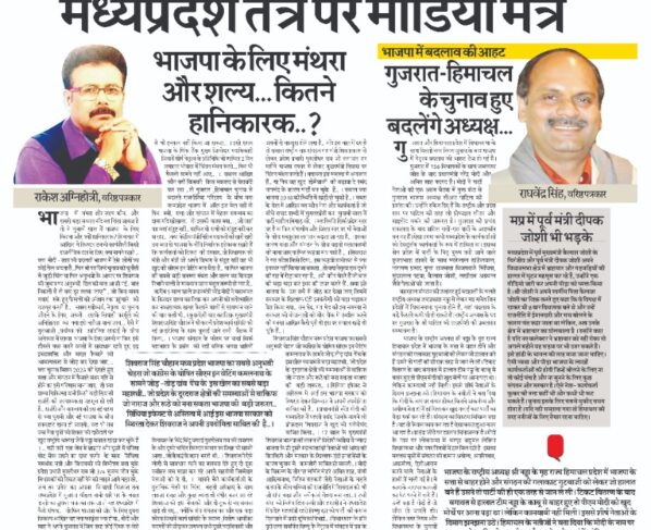 मध्यप्रदेश तंत्र पर मीडिया मंत्र राकेश अग्निहोत्री, वरिष्ठ पत्रकार भाजपा में मंथरा और शल्य कौन.. और सबसे बड़ा सवाल यदि यह चिंता जायज है तो ये चुनावी साल में भाजपा…