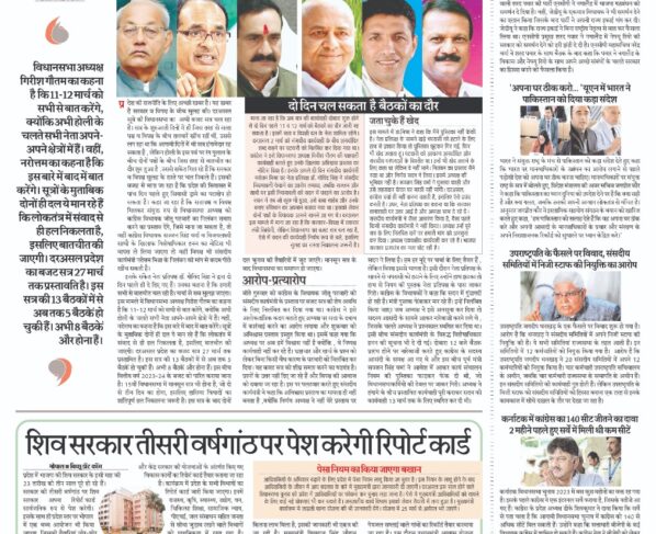 – हरीश फतेहचंदानी प्रदेश की राजनीति के लिए अच्छी खबर है। यह खबर है सरकार व विपक्ष के बीच सुलह की। दरअसल सूबे की विधानसभा का अभी बजट सत्र चल…