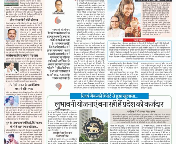 रिजर्व बैंक की रिपोर्ट से हुआ खुलासा… भोपाल/बिच्छू डॉट कॉम। सियासी फायदे के लिए प्रदेश सरकारों द्वारा जिस तरह से कई लोक लुभावन योजनाओं की घोषणा दर घोषणाएं कर उन…