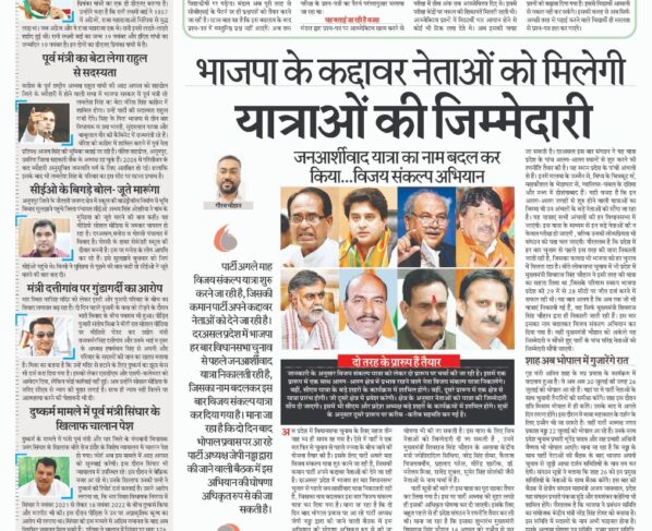 जनआर्शीवाद यात्रा का नाम बदल कर किया…विजय संकल्प अभियान गौरव चौहान/बिच्छू डॉट कॉम। अब प्रदेश में विधानसभा चुनाव के लिए महज तीन माह का ही समय रह गया है। ऐसे…