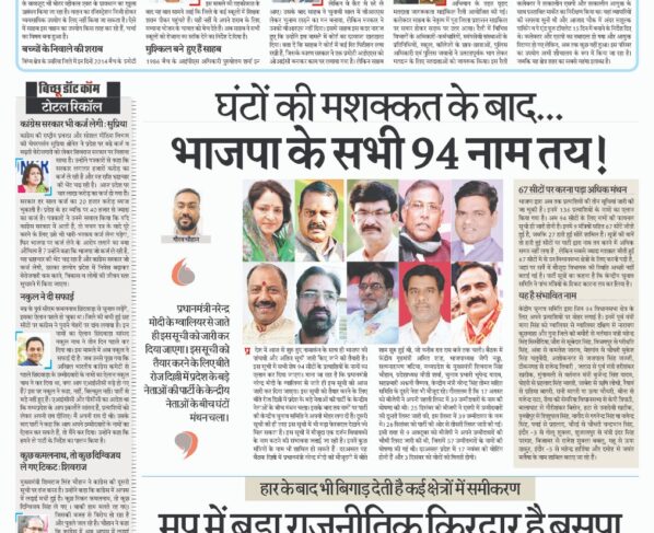 गौरव चौहान/बिच्छू डॉट कॉम। प्रदेश में आज से शुरु हुए नामांकन के साथ ही भाजपा की पांचवी और अंतिम सूची जारी किए जाने की तैयारी है। इस सूची में सभी…