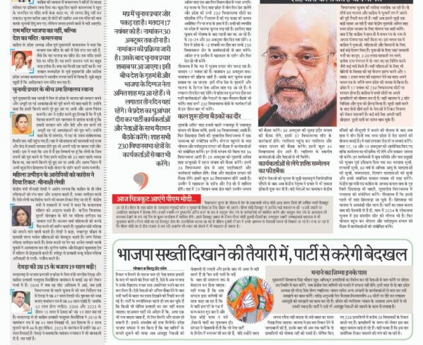 भाजपा का घोषणा पत्र किसान, युवा और महिला केंद्रित होगा भोपाल/बिच्छू डॉट कॉम। विधानसभा चुनाव को लेकर कांग्रेस ने अपना वचन पत्र जारी कर दिया है। कुल 1290 वचन के…