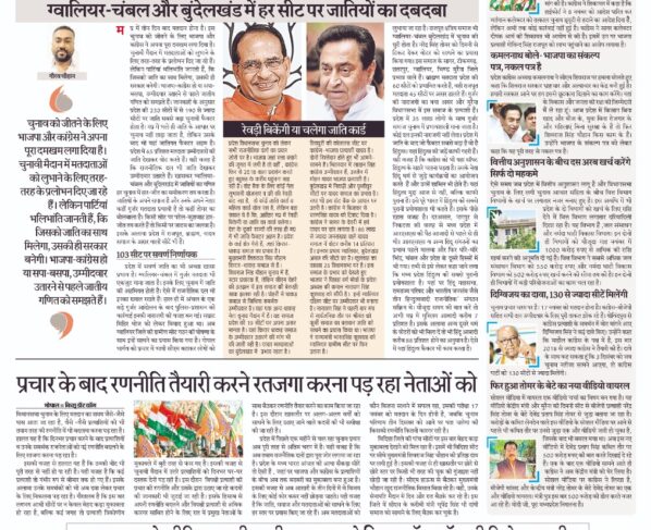 ग्वालियर-चंबल और बुंदेलखंड में हर सीट पर जातियों का दबदबा गौरव चौहान मप्र में तीन दिन बाद मतदान होना है। इस चुनाव को जीतने के लिए भाजपा और कांग्रेस ने…