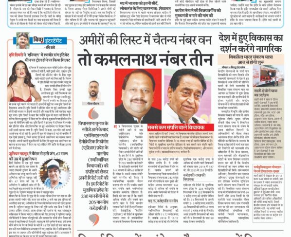 गौरव चौहान/बिच्छू डॉट कॉम। मप्र विधानसभा चुनाव के नतीजे आने के बाद एसोसिएशन फॉर डेमोक्रेटिक रिफॉर्म्स (एडीआर) प्रदेश के माननीय (नवनिर्वाचित विधायकों) की संपत्ति को लेकर अपनी रिपोर्ट जारी की…