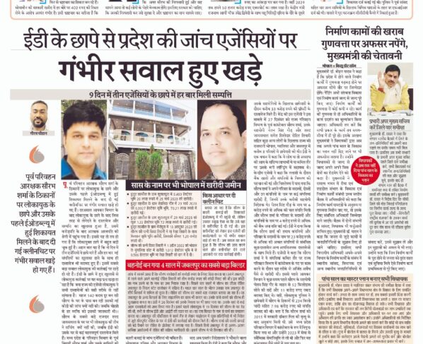 9 दिन में तीन एजेंसियों के छापे में हर बार मिली सम्पत्ति गौरव चौहानपूर्व परिवहन आरक्षक सौरभ शर्मा के ठिकानों पर लोकायुक्त के छापे और उसके पहले ईओडब्ल्यू में हुई…