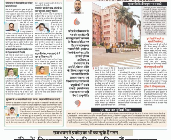 मंत्रालय से लेकर फील्ड तक में होगी नई जमावट…. गौरव चौहान/बिच्छू डॉट कॉम। प्रदेश की मोहन सरकार नए सिरे से प्रशासनिक जमावट करने जा रही है। मंत्रालय से लेकर जिलों…