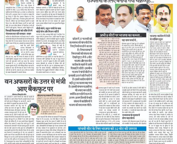 राज्यसभा के लिए बनाया गया चक्रव्यूह… गौरव चौहान लोकसभा चुनाव से पहले मप्र में भाजपा राज्यसभा की पांचों सीटों को कब्जाने की रणनीति पर काम कर रही है। सूत्रों का…
