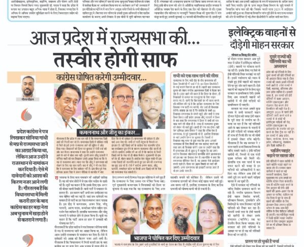 कांग्रेस घोषित करेगी उम्मीदवार… गौरव चौहान राज्यसभा के लिए कल नामांकन की आखिरी तारीख है। मप्र की पांच सीटों में से एक सीट कांग्रेस के खाते की है। सूत्रों का…