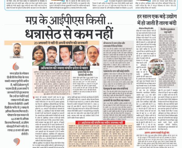 23 अफसरों ने नहीं दी अपनी संपत्ति की जानकारी गौरव चौहान प्रशासन की बागडोर संभालने वाले मप्र के कुछ आईपीएस अफसर किसी धन्नासेठ से कम नहीं हैं। उनकी संपत्ति दिन-रात…
