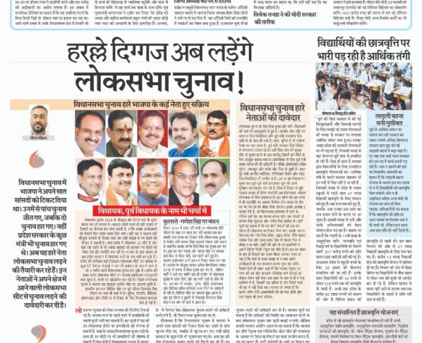विधानसभा चुनाव हारे भाजपा के कई नेता हुए सक्रिय गौरव चौहान लोकसभा चुनाव को लेकर भाजपा की तैयारियां तेज हो गई है। भाजपा मार्च के पहले हफ्ते में प्रत्याशियों की…