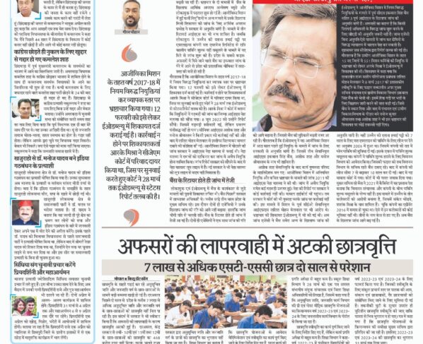 7 लाख से अधिक एसटी-एससी छात्र दो साल से परेशान भोपाल/बिच्छू डॉट कॉम। छात्रवृति के सहारे पढ़ाई कर रहे अनुसूचित जाति और जनजाति वर्ग के छात्र-छात्राओं के सामने बड़ी समस्या…