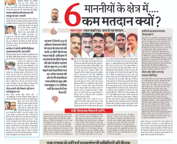 मंथन शुरू: लक्ष्य बढ़ाने का..कम हो रहा मतदान… गौरव चौहान/बिच्छू डॉट कॉम। लोकसभा चुनाव की घोषणा से पहले ही भाजपा ने हर बूथ पर 370 वोट बढ़ाने के लिए काम…