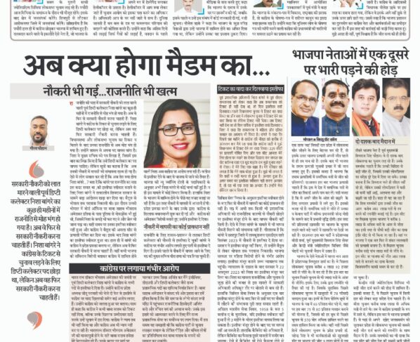 नौकरी भी गई…राजनीति भी खत्म गौरव चौहान राजनीति की चाह में सरकारी नौकरी को लात मारने वाली पूर्व डिप्टी कलेक्टर निशा बांगरे का कुछ ही महीनों में राजनीति से मोह…