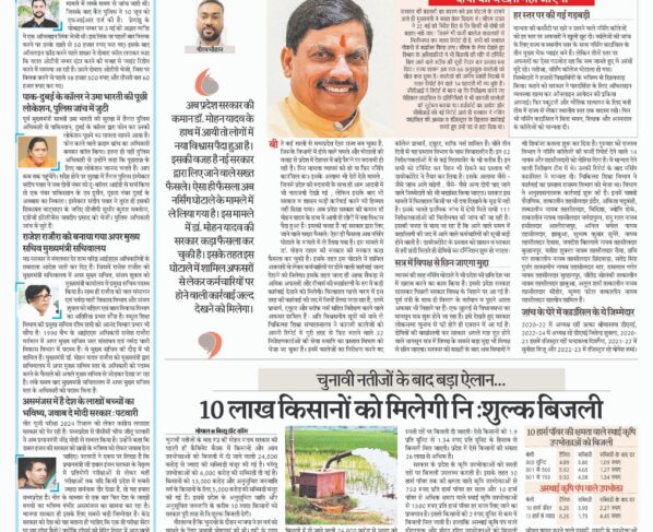 10 लाख किसानों को मिलेगी नि:शुल्क बिजली