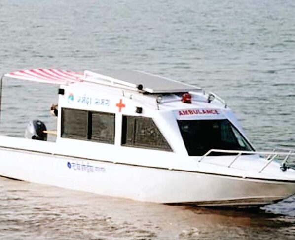 नर्मदा की लहरों पर तैर रही सहयोग की एंबुलेंस