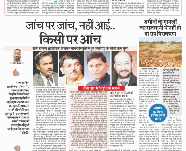 राज्य ग्रामीण आजीविका मिशन में संविदा नियुक्ति में हुए फर्जीवाड़े की चौथी जांच शुरू गौरव चौहान मप्र राज्य ग्रामीण आजीविका मिशन (एसआरएलएम) में संविदा नियुक्ति घोटाला ऐसा मर्ज हो गया…