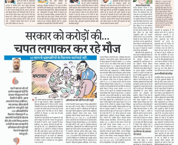 10 साल से भ्रष्टाचारियों के खिलाफ कार्रवाई नहीं… गौरव चौहान/बिच्छू डॉट कॉम। मप्र में सरकारें भ्रष्टाचार के खिलाफ जीरो टॉलरेंस की बातें तो खूब करती हैं, लेकिन भ्रष्टाचारियों के खिलाफ…