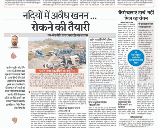 एम-सेंड नीति तैयार कर रही मप्र सरकार गौरव चौहान प्रदेश की नदियों में हो रहे रेत के अवैध खनन को रोकने के लिए सरकार एम-सैंड (मैन्युफैक्चर्ड सैंड) को प्रोत्साहित करने…