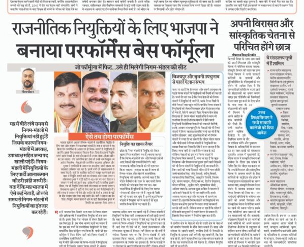 राजनीतिक नियुक्तियों के लिए भाजपा ने बनाया परफॉर्मेंस बेस फॉर्मूला