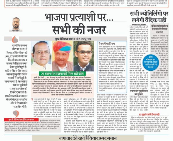 बुधनी विधानसभा सीट उपचुनाव गौरव चौहान/बिच्छू डॉट कॉम। उपचुनाव की तारीखों की घोषणा से पहले ही भाजपा अपनी तैयारियां शुरु कर दी थीं। संगठन स्तर पर संभावित नामों की चर्चा…