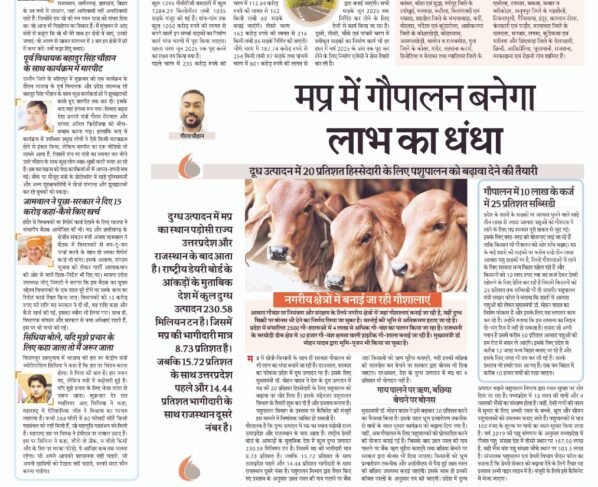 दूध उत्पादन में 20 प्रतिशत हिस्सेदारी के लिए पशुपालन को बढ़ावा देने की तैयारी गौरव चौहान मप्र में खेती-किसानी के साथ ही सरकार गौपालन को भी लाभ का धंधा बनाने…