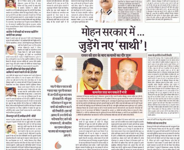 रावत की हार के बाद कयासों का दौर शुरू गौरव चौहान/बिच्छू डॉट कॉम। मप्र में मोहन यादव की 11 महीने पुरानी सरकार में जल्दी ही कुछ बदलाव हो सकते हैं।…