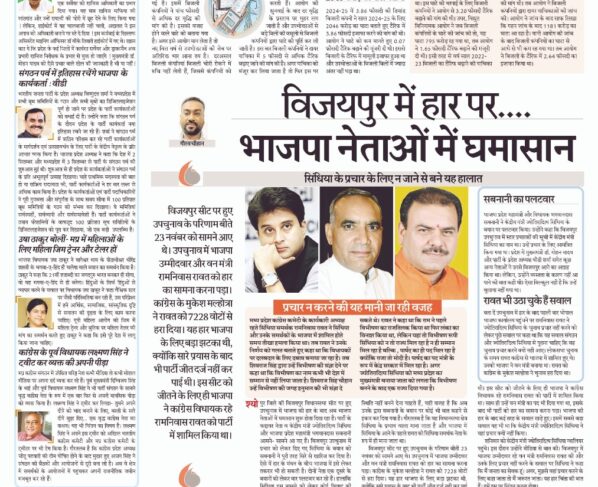 सिंधिया के प्रचार के लिए न जाने से बने यह हालात गौरव चौहान/बिच्छू डॉट कॉम। श्योपुर जिले की विजयपुर विधानसभा सीट पर हुए उपचुनाव में भाजपा की हार के बाद…