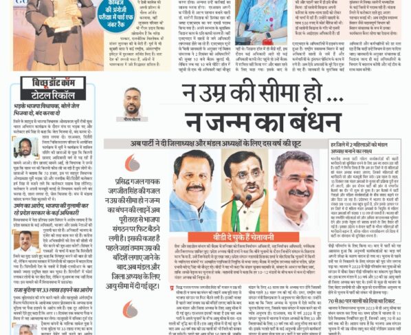 अब पार्टी ने दी जिलाध्यक्ष और मंडल अध्यक्षों के लिए दस वर्ष की छूट गौरव चौहान प्रसिद्ध गजल गायक जगजीत सिंह की गजल न उम्र की सीमा हो न जन्म…