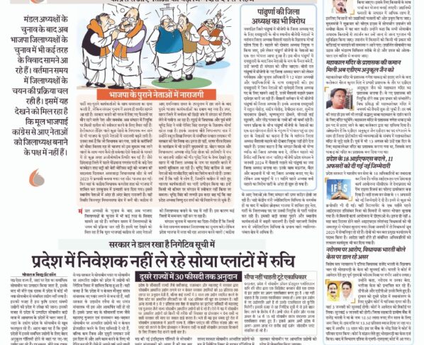 कांग्रेस से आए नेताओं को बड़ी जिम्मेदारी देने से परहेज गौरव चौहान मंडल अध्यक्षों के चुनाव के बाद अब भाजपा जिलाध्यक्षों के चुनाव में भी कई तरह के विवाद सामने…