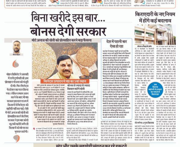 मोटे अनाज की खेती को प्रोत्साहित करने बड़ा फैसला गौरव चौहान/बिच्छू डॉट कॉम। मप्र सरकार ने किसानों को मोटे अनाज की खेती के लिए प्रोत्साहित करने के लिए 10 रुपए…