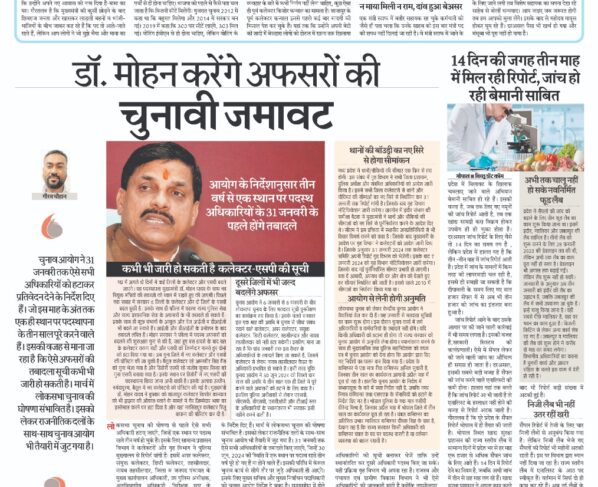 लोकसभा चुनाव पर रहेगा फोकस विनोद उपाध्याय जल्द ही मंत्रियों के बीच जिलों के प्रभार का बंटवारा कर दिया जाएगा। भाजपा सूत्रों का कहना है कि लोकसभा चुनाव को दृष्टिगत…