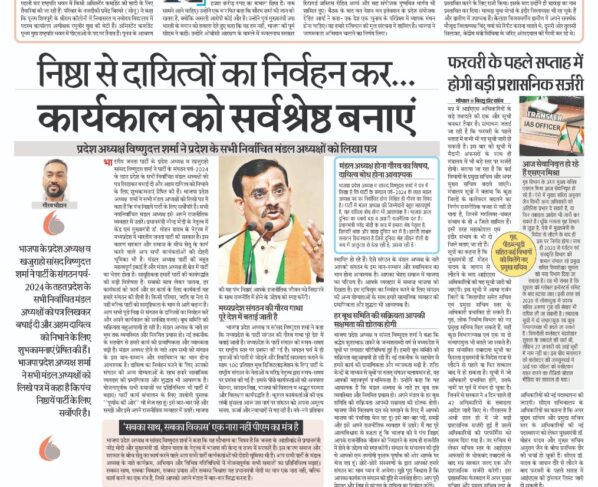 प्रदेश अध्यक्ष विष्णुदत्त शर्मा ने प्रदेश के सभी निर्वाचित मंडल अध्यक्षों को लिखा पत्र गौरव चौहान/बिच्छू डॉट कॉम। भारतीय जनता पार्टी के प्रदेश अध्यक्ष व खजुराहो सांसद विष्णुदत्त शर्मा ने…