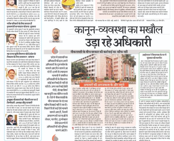 नौकरशाही के बीच सरकार की कार्रवाई का खौफ नहीं गौरव चौहान मुख्यमंत्री डॉ. मोहन यादव ने पद भार संभालते ही अफसरों को संदेश दे दिया था कि प्रदेश में सुशासन…
