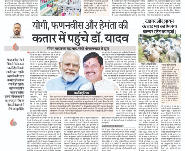 सीएम यादव का बढ़ा कद, मोदी भी कामकाज से खुश गौरव चौहानभाजपा में इन दिनों नीचे से लेकर ऊपर तक पीढ़ी परिवर्तन का दौर चल रहा है। यह परिवर्तन सत्ता…