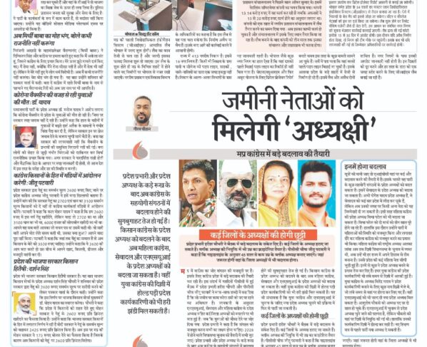 ’मप्र कांग्रेस में बड़े बदलाव की तैयारी गौरव चौहानमप्र में कांग्रेस का जोर संगठन की मजबूती पर है। इसके लिए कांग्रेस प्रदेश में बड़े बदलाव की तैयारी कर रही है।…