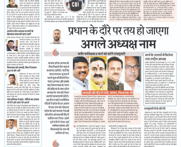 बतौर पर्यवेक्षक 8 मार्च को करेंगे रायशुमारी गौरव चौहानपहले दिल्ली विधानसभा चुनाव फिर महाकुंभ के कारण मप्र में भाजपा अध्यक्ष का चुनाव कार्य पूरा नहीं कर पाई। पार्टी सूत्रों ने…
