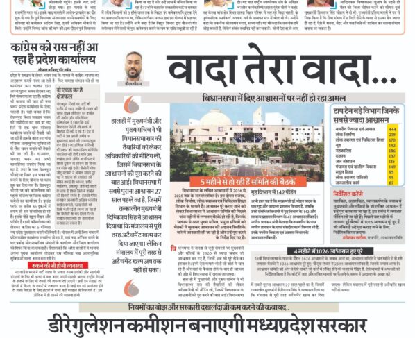 विधानसभा में दिए आश्वासनों पर नहीं हो रहा अमल गौरव चौहानधान सभा में जनता से जुड़े सवालों पर मुख्यमंत्री और मंत्रियों के 2500 से ज्यादा जवाब जो आश्वासन बन गए…