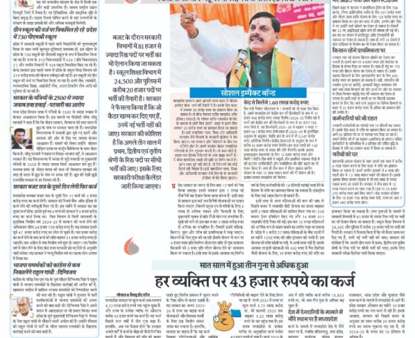 किसानों को धान-गेहूं पर बोनस, गरीबों के लिए 6 लाख मकान गौरव चौहानप्रदेश सरकार का बजट दो दिन बाद 12 मार्च को पेश किया जाएगा। इसमें सरकार द्वारा 1 लाख…