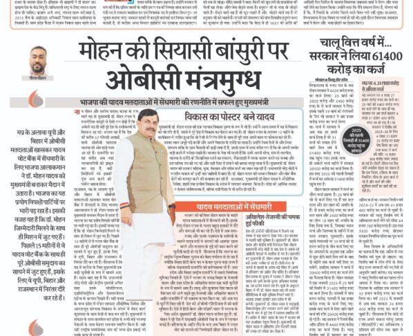 भाजपा की यादव मतदाताओं में सेंधमारी की रणनीति में सफल हुए मुख्यमंत्री गौरव चौहाननाम मोहन और सरनेम यादव। कान्हा के नाम वाले मप्र के मुख्यमंत्री डॉ. मोहन यादव ने राजनीतिक…