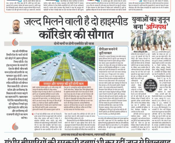 दोनों मार्गों पर होगी एक्सीडेंट फ्री यात्रा गौरव चौहानमप्र में कई बड़े कॉरिडोर बनाए जाने की योजना है। इनके माध्यम से देश के प्रमुख शहरों और राज्यों को सीधा जोड़ा…