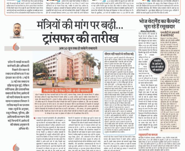 अब 10 जून तक हो सकेंगे तबादले गौरव चौहान/बिच्छू डॉट कॉम। मप्र सरकार ने सरकारी कर्मचारियों और अधिकारियों के तबादलों की अंतिम तारीख को 31 मई से बढ़ाकर 10 जून…