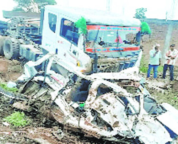 सीमेंट से भरा ट्रक कार पर पलटा, नौ लोगों की मौत