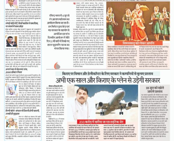 किराए पर विमान और हेलीकॉप्टर के लिए सरकार ने कम्पनियों से बुलाए प्रस्ताव भोपाल/बिच्छू डॉट कॉम। मप्र सरकार का विमान सी-90 चार साल पहले ग्वालियर एयरपोर्ट पर दुर्घटनाग्रस्त हुआ था।…