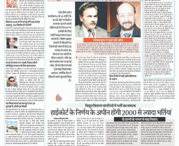 अब सुरक्षा निधि से कटेगी उपभोक्ताओं की जेब भोपाल/बिच्छू डॉट कॉम। जुलाई से बिजली उपभोक्ताओं के बिलों में सुरक्षा निधि की राशि बढ़ जाएगी। वर्तमान निधि 1500 रुपए बढक़र 2200…